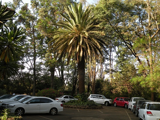 3) Is ook weer moeilijk te zien maar mijn goed oog zegt me dat het een Washingtonia is, de slanke bruine stam wijst uit dat het een Washingtonia robusta zal zijn.