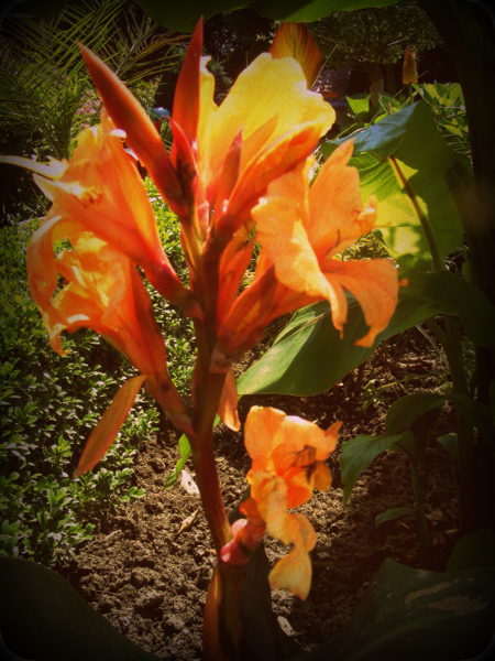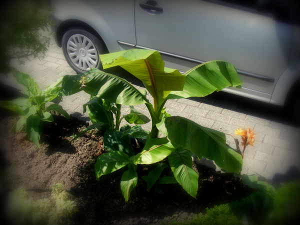 Het is niet bepaald een tropische tuin, maar als je goed kijkt tussen de planten danb ben je toch een beetje in het zuiden :)
