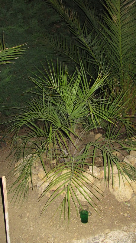 Op de foto kun je hem zien. De Palm werd verkocht als Butia Capitata, toch heb ik mijn twijfels omdat ik hem groener en sprietiger vind als de andere capitata's. Deze anderen zijn steviger en blauw/ grijzer. Zou dit een Butia Eriospatha kunnen zijn? of een andere Butia ?