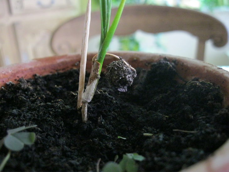 Ik heb een trachy fortunei darjeeling zaailing met de zaadbal die mee omhoog gekomen is uit de aarde. Nochtans staat het plantje in een diepe pot. Verder groeit het plantje goed. Is dit een probleem?