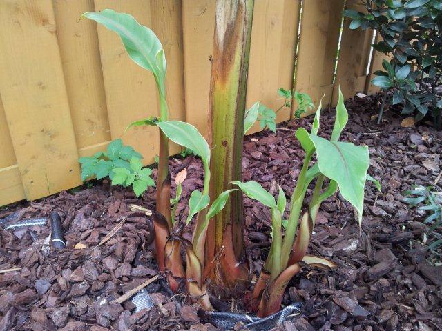 Ik heb in mijn tropituin 2 bananen een Musa Basjoo met pups en een ensete ventricosum "Maurelli"