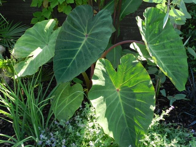 Ik heb Colocasia Pink China voor het eerst in volle grond , (komt nog van Bart -djoeke)groeit prima en is al groot ttoz van wat het was , maar tegen volle zon kan deze ondersoort blijkbaar niet ,ondanks dat ze alle dagen een goede gietbeurt kregen , al voor de tropische hitte liet hij al de oren hangen met veel blad verbrand