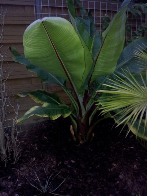 Ik heb in mijn tropituin 2 bananen een Musa Basjoo met pups en een ensete ventricosum "Maurelli"