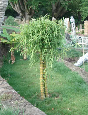 Photo de gauche à droite: Bambusa ventricosa (hivernage en serre), Chorisia speciosa (câbles chauffants et entourés par des plaques de polycarbonate), Coccotrinax crinita (hivernage en serre)