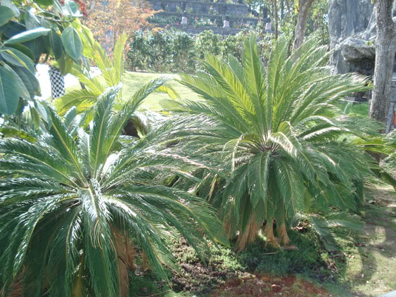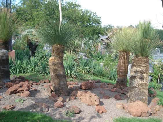 Photo de gauche à droite: Cycas revoluta (hivernage en serre), Dasylirion longissimum (hivernage en serre)
