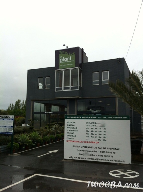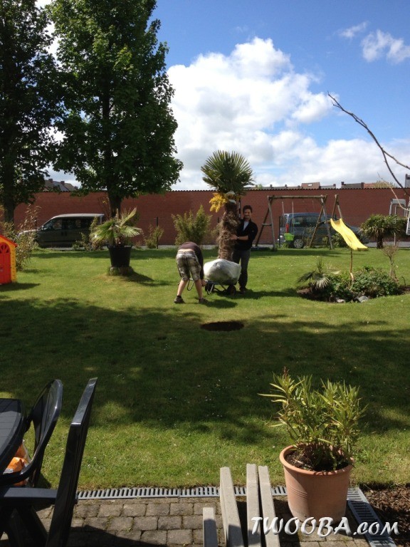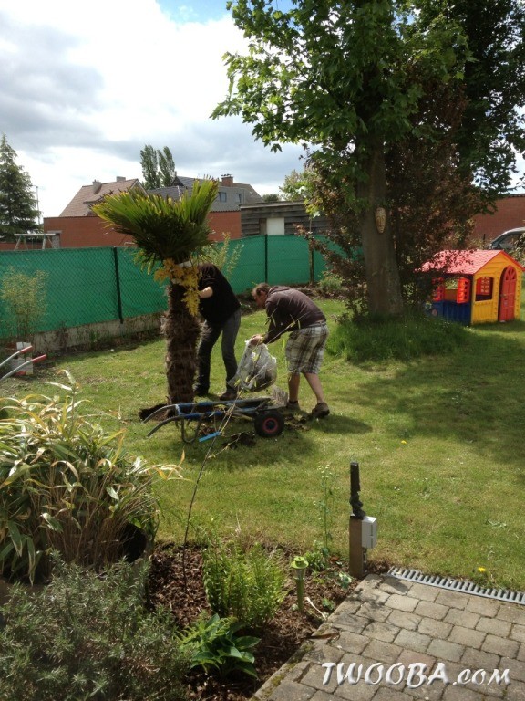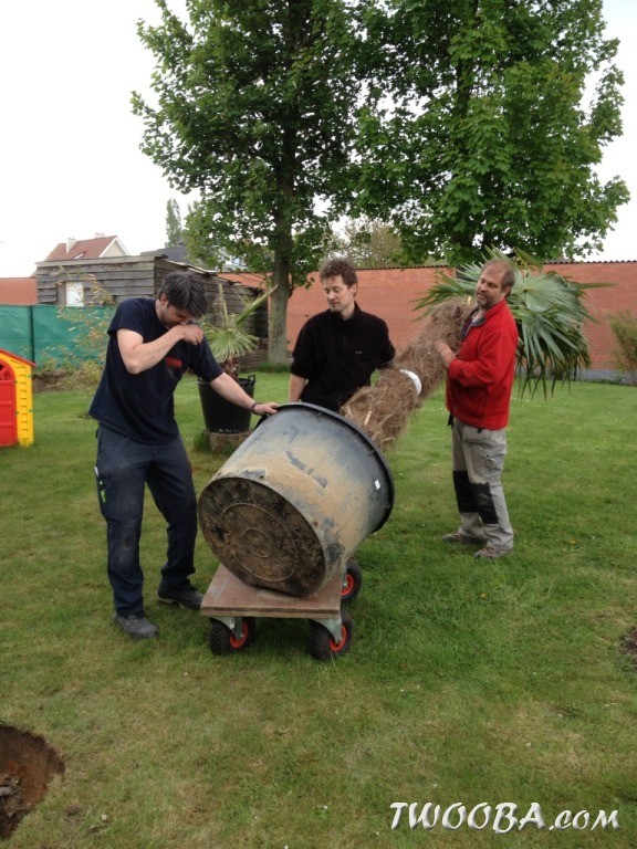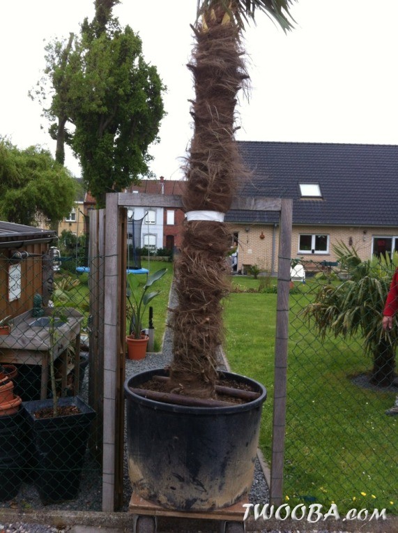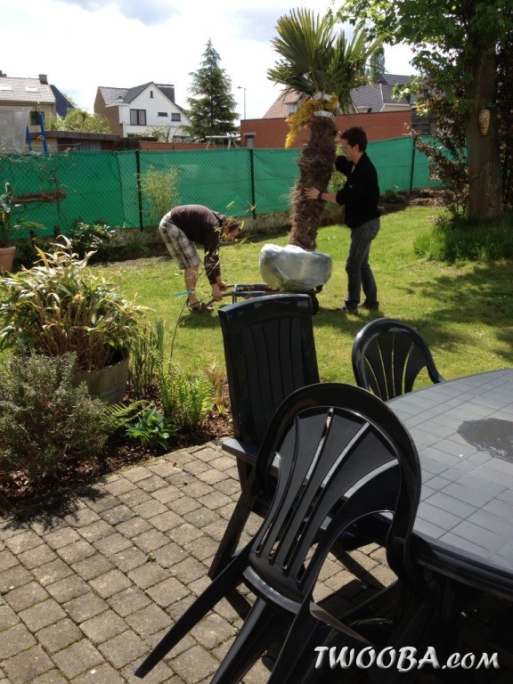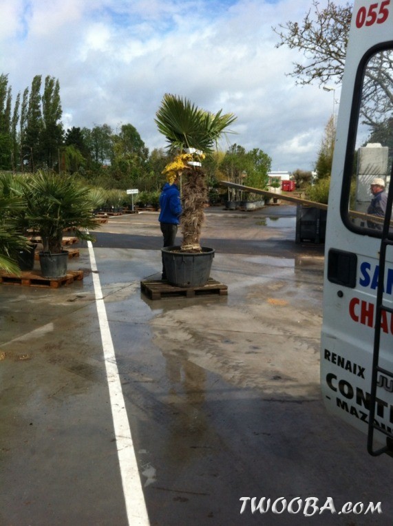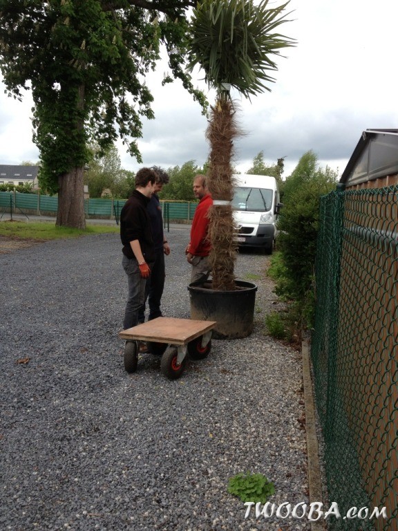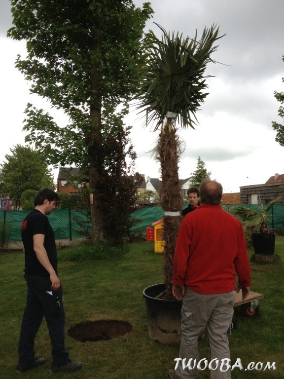 En mai 2013 le moment était venu d’acheter deux grands palmiers chanvres (Trachycarpus fortunei). Enfin!… En route pour Ardooie (Belgique) pour choisir mes deux palmiers chez “FC Plant” avec mon pote Jean-Marie.
