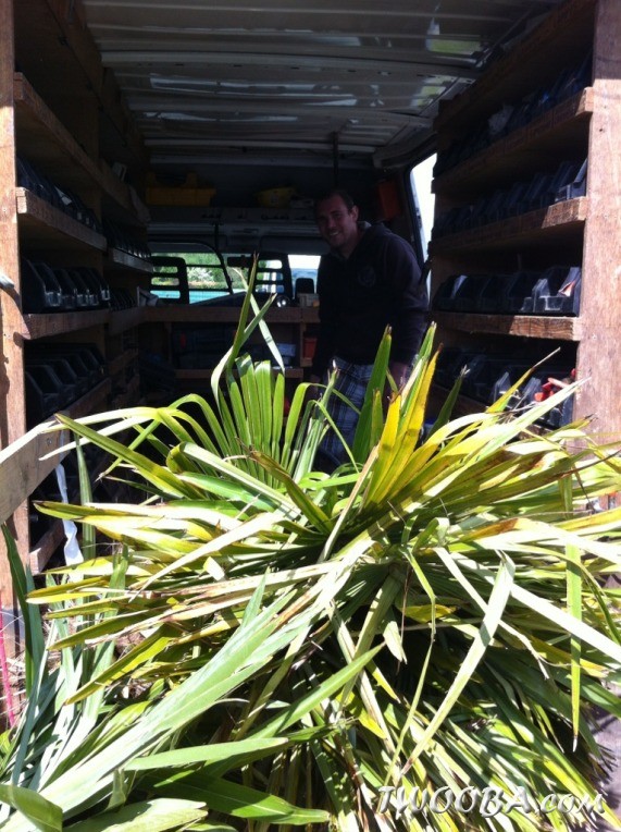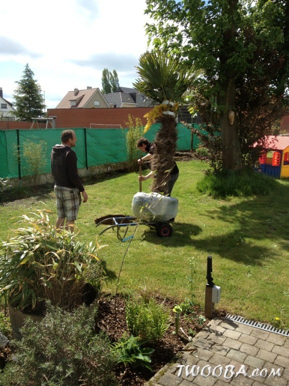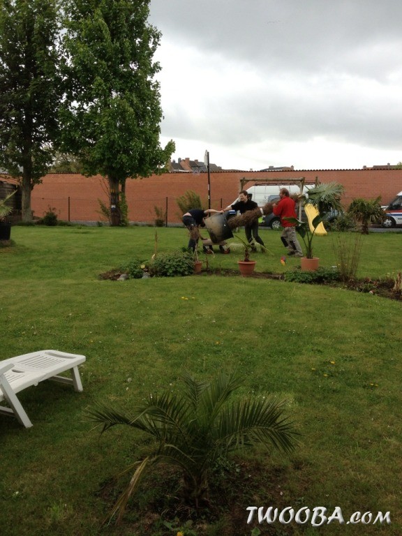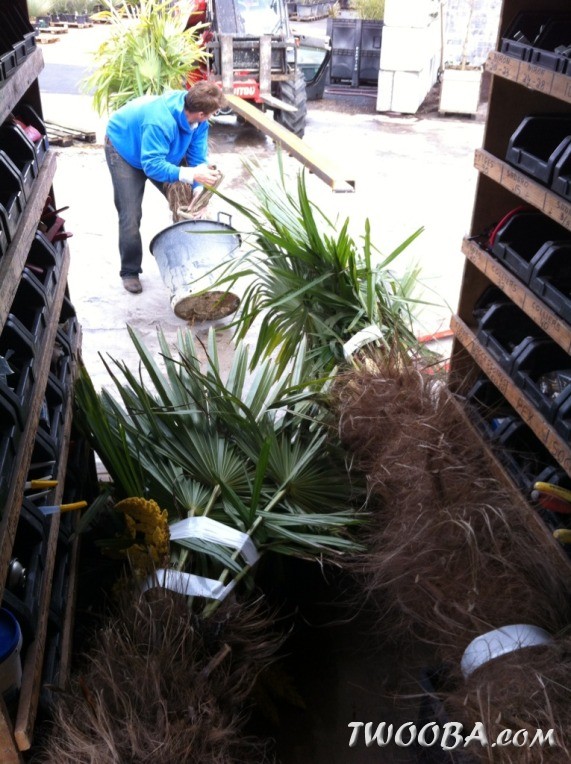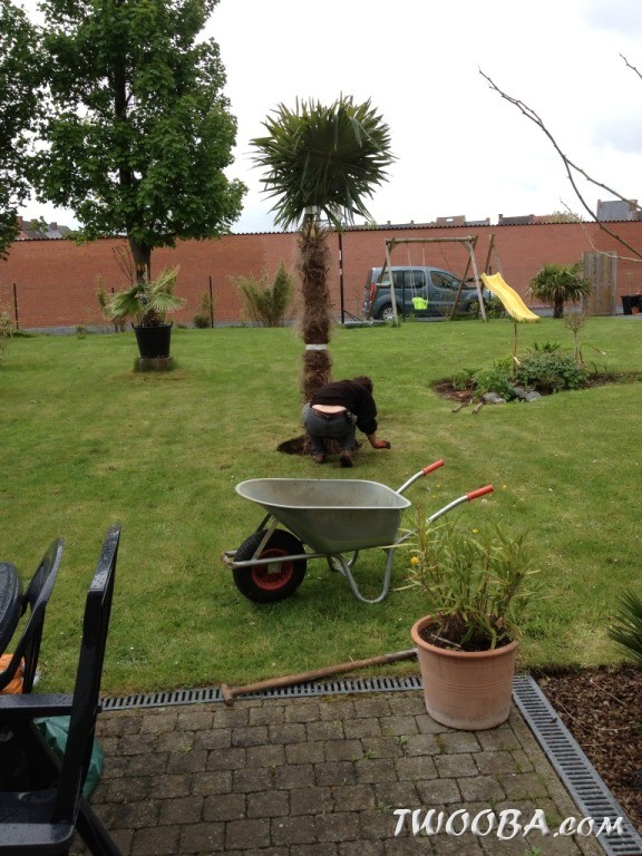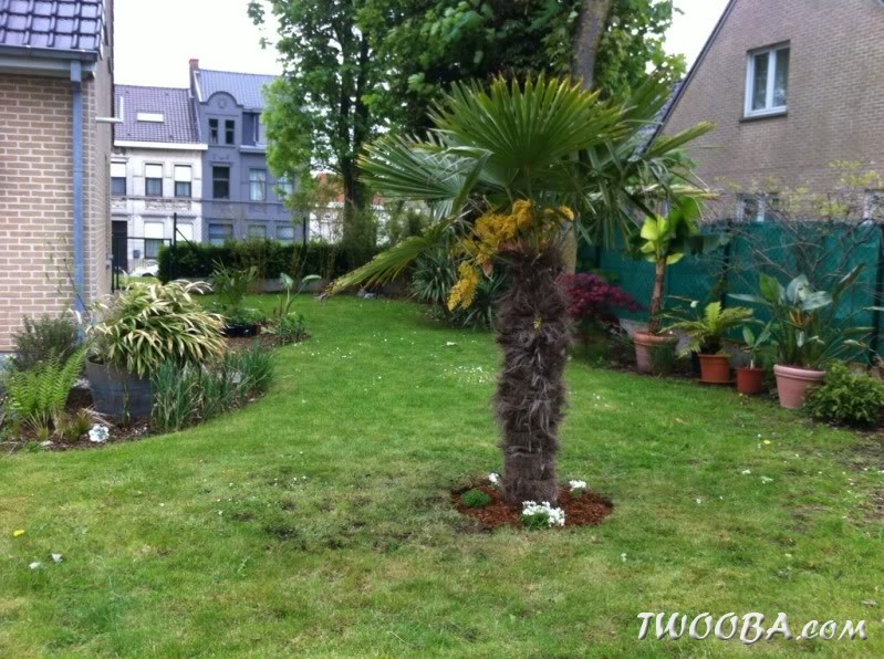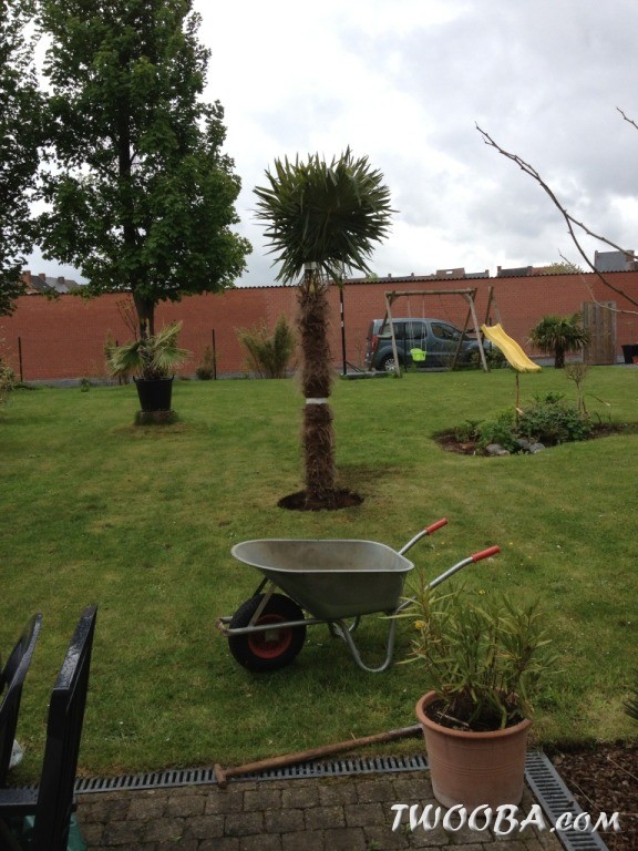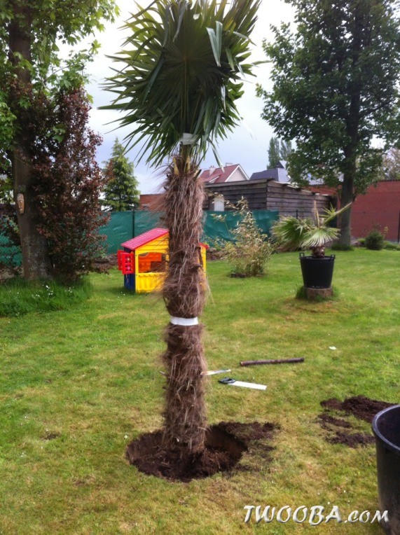 En mai 2013 le moment était venu d’acheter deux grands palmiers chanvres (Trachycarpus fortunei). Enfin!… En route pour Ardooie (Belgique) pour choisir mes deux palmiers chez “FC Plant” avec mon pote Jean-Marie.