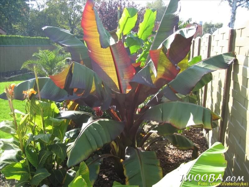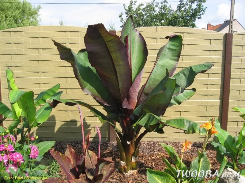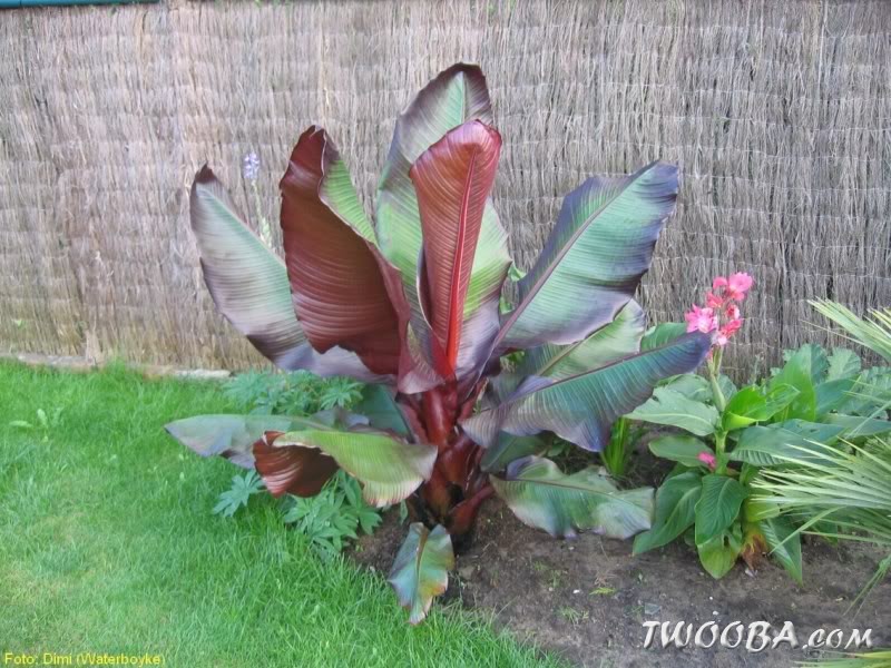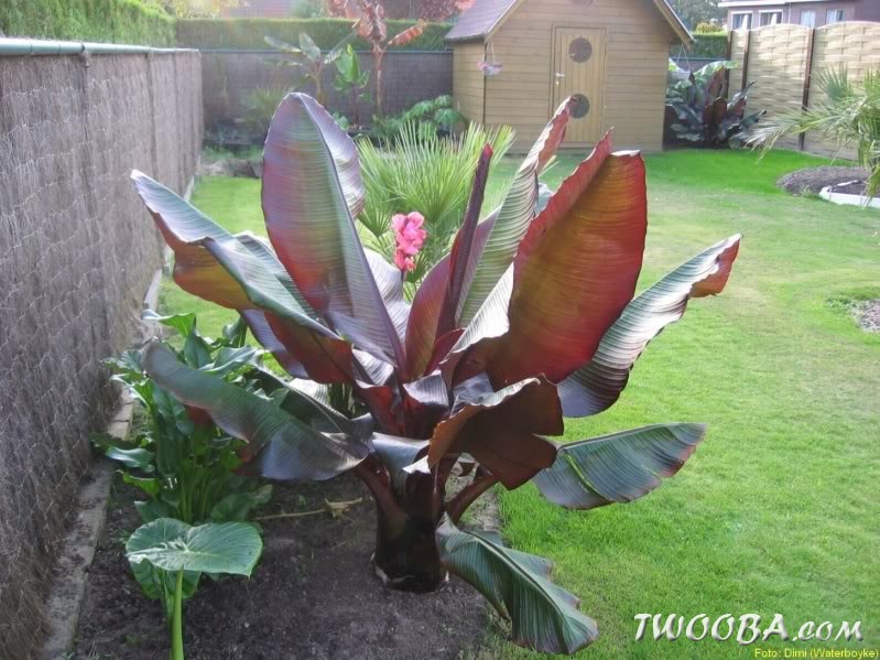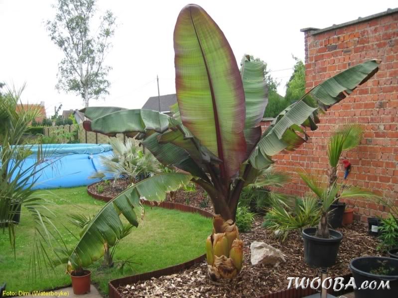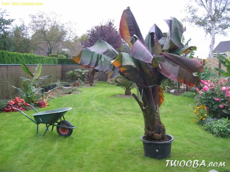 This very fast growing banana is extremely easy in care. Both in pot and in the ground, but is does need enough heat, water and nutrients. Overburden is virtually impossible. The color of the leaves varies from green-vine to purple, depending on the plant’s location. However, the opinions and experiences are divided between whether it is the sun or just the shadow that causes the red color. The Maurelli has a remarkably small root root and can thus remain in a relatively small pot. Because its large leaves catch a lot of wind, however, a larger or heavy pot is highly recommended.