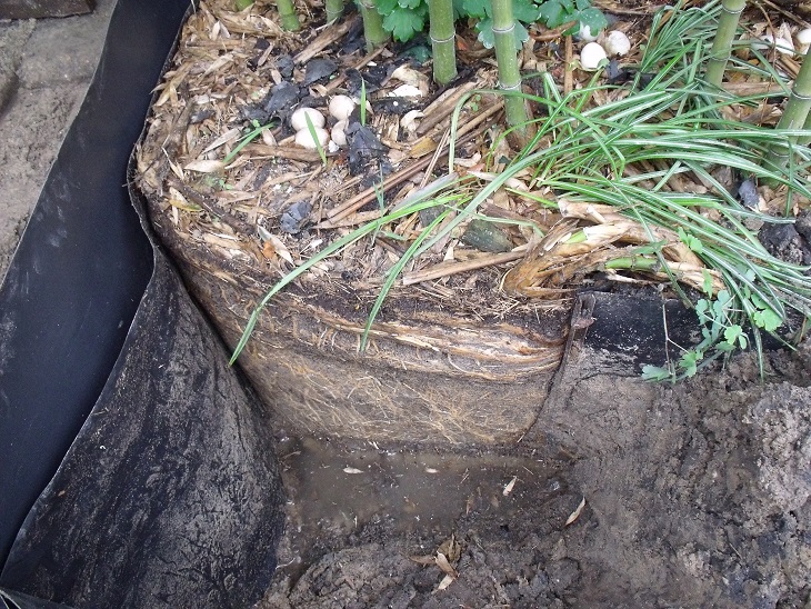 nou om even terug te komen over de rizomen , toetste al eerder dat ik verleden jaar de ph-atrovaginata had uitgebreid , dus meer ruimte heb gegeven, ( zag vanmiddag dat de rizomen groei in volle gang is ) had ik foto ervan gemaakt toen, je kan hierop duidelijk zien dat boven de rizomen groeien en de haar wortels veel dieper gaan, die haar wortels zijn geen rizomen,en worden dat ook niet, rizomen zijn veel dikker en daarop groeien die halmen , die haar wortels nemen voeding en water op, je ziet duidelijk dat het zo rond de 30 cm diep gaat die rizomen, tja , wilde het even laten zien , m.v.g. paul.