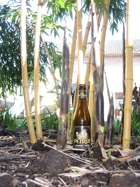 Hier vergaat het de vivax dit jaar minder goed. Er komen maar enkele scheuten uit de grond. De aanhoudende droogte lijkt deze bamboe parten te spelen. De slakken hebben alweer kans gezien om gaten in de verse halmen te knagen. Je wordt er soms wel moedeloos van. Misschien moet ik ook maar eens met een Belgisch biertje proberen (Roellus) :lol: