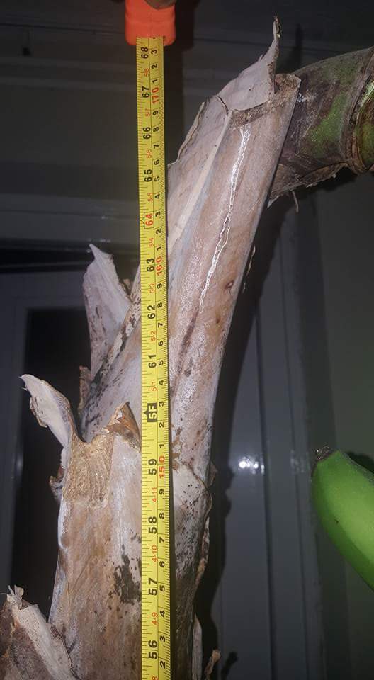 Wie heeft de grootste stam banaan, gemeten bovenkant pot en onder het blad. Hoe wordt die overwinterd?