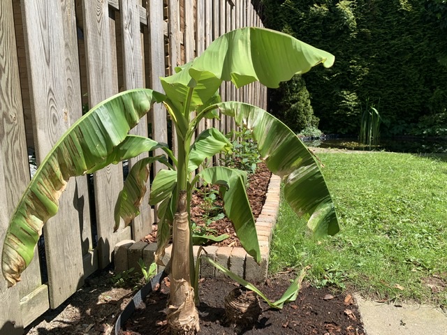 In het voorjaar van 2019 heb ik een Musa Basjoo gekocht. Deze heb ik toen in een grote pot gepland en op een zonnige plek in de tuin gezet. Aan het einde van de zomer had de plant een stamhoogte van 1.5 meter met bladeren die erg groot waren.