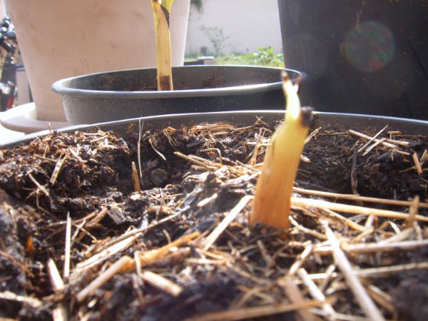 Enkele weken geleden had ik mijn MUSA gestekt, nu stonden er op een relatie klein boompje een 6 tal uitlopers (stamomtrek 15 cm hoofdstam).