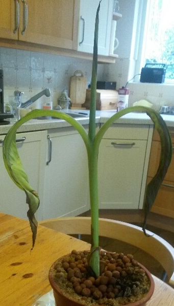 Ook het nieuwe opgerold blad begon bruin te kleuren.