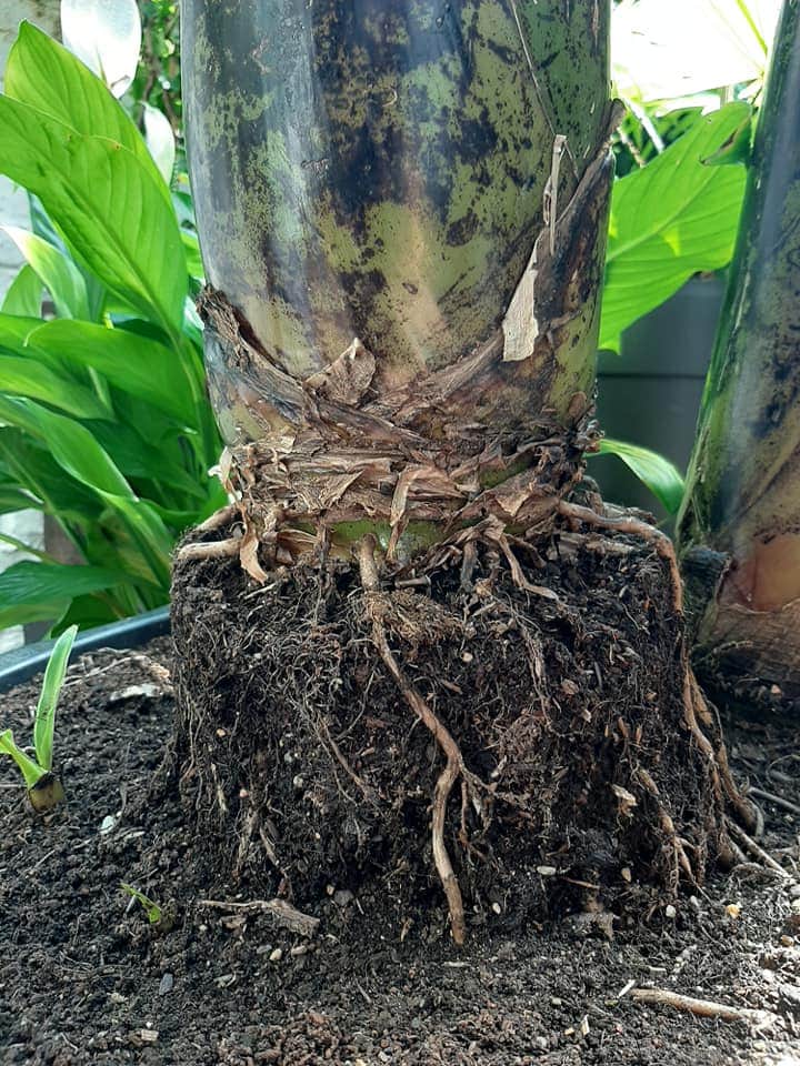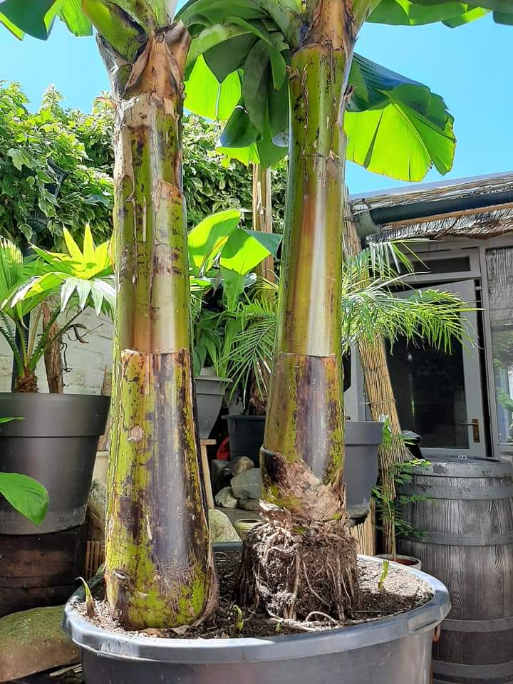 Klopt , die gedachte heb ik ook gehad dat het eventueel zwakker kon zijn. De wortels die nu bloot liggen krijgen een coting and blijven functioneren. Dit zal wel iets helpen, aangezien de dichtheid. Lijkt erop dat de banaan zelf een oplossing heeft voor zon en openlucht. :thumb_up: