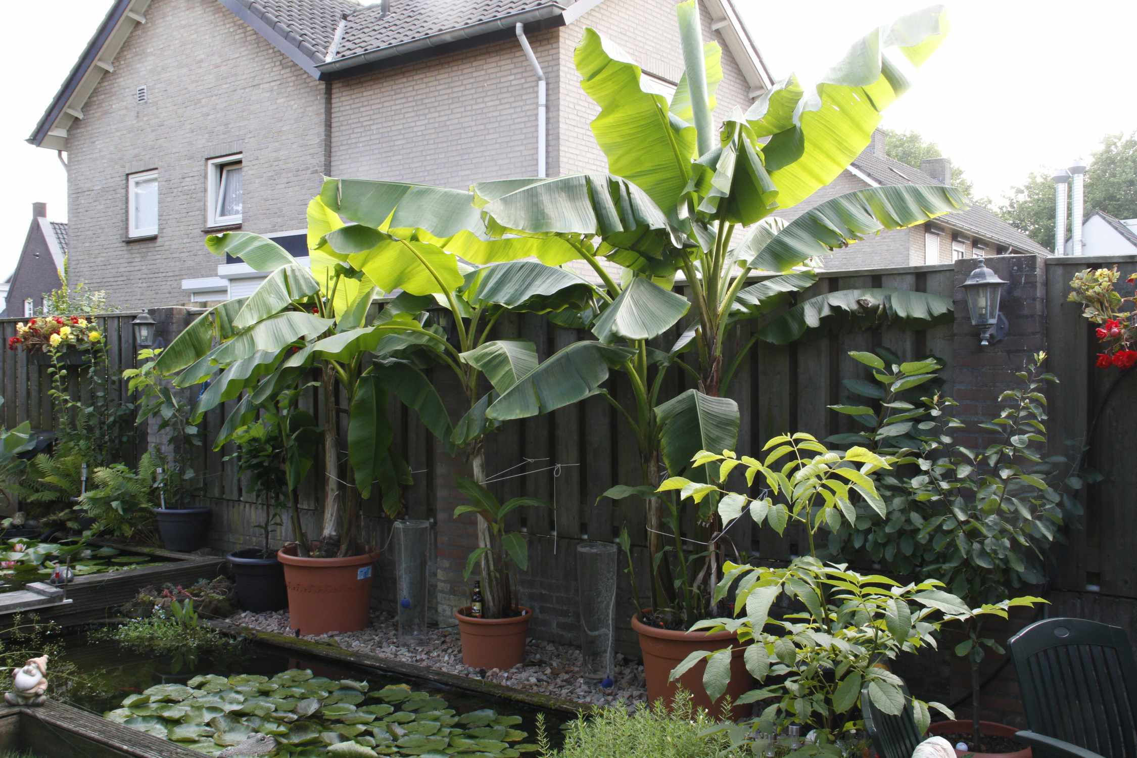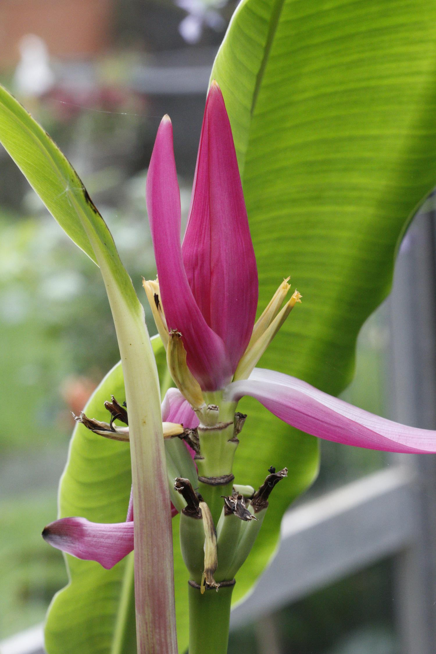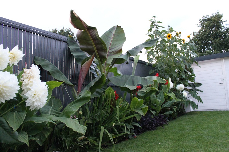 heb ook nog zoveel andere soorten staan ensete glaucum,ensete ventricosum,ensete ventricosum maurelli. zogezegd ensete perrieri. musella ,sikkemensis red tiger ,darjeeling giant,basjoo,en veel canna's en andere bloemen.