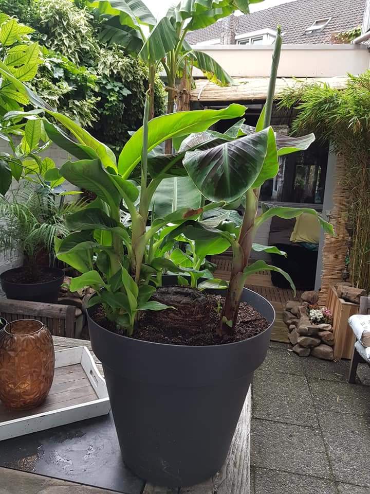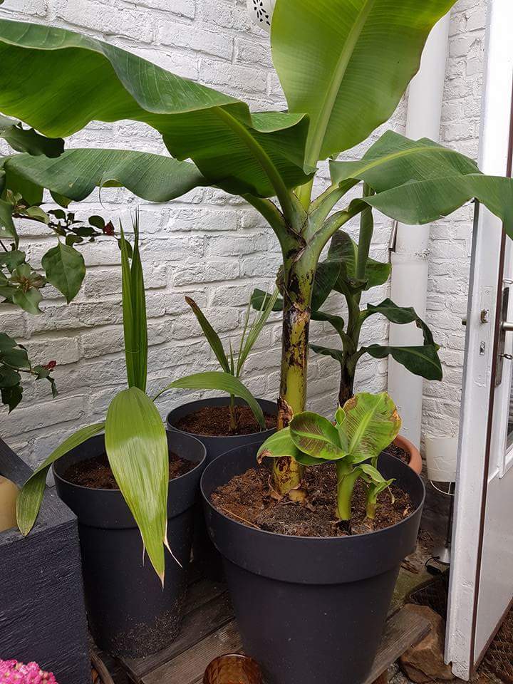 Pita schreef:Ben momenteel bij mn schoonouders in montroy (valencia, spanje). Heb maar een cavendish voor ze gehaald aangezien het hier tot zeker okt-nov 30gr kan zijn. Alleen is de tuin hier erg rotsachtig en kleiachtig. De bladeren beginnen wel bruin te worden. Dit komt denk ik of door de grond of doordat die direct in de volle zon is geplaatst, hij stond nl bij het tuincentrum in een kas/schaduw. We gaan het wel zien, vooruitzichten zijn 30gr of meer aankomende tijd.