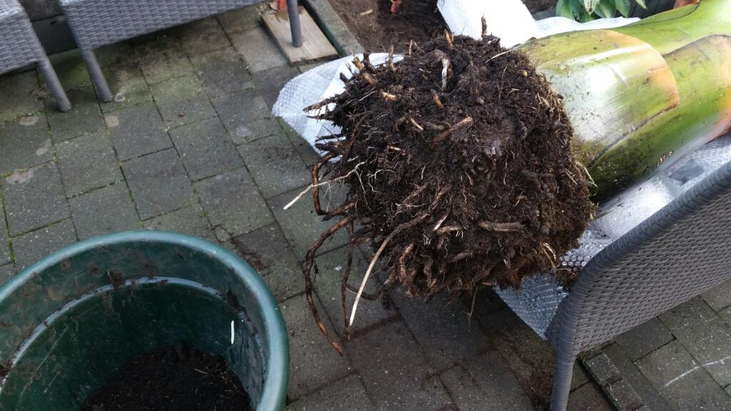 Jullie hebben wel een punt. Niet echt zo over nagedacht, want toen hij eindelijk op z'n plek lag was ik hem zo spuugzat dat ik hem gelijk aan een vriend heb aangeboden, die zei natuurlijk volmondig JA op een gratis plantje... Maar goed, nu heb ik volgend jaar meer ruimte om een beetje te schuiven met de planten en kan ik er misschien/waarschijnlijk weer een ander leuk plantje bij zetten, maar dan wel eentje die gewoon zonder enige vorm van bescherming kan blijven staan in de winter!!!!