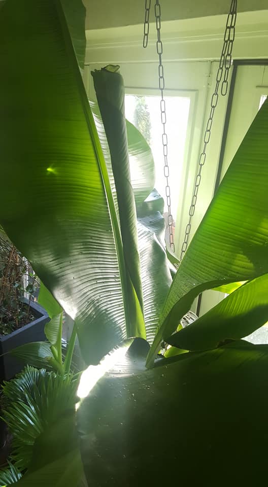Nu toch nieuwsgierig geworden wat eronder het half uitgekomen blad van de Pokon banaan zit...