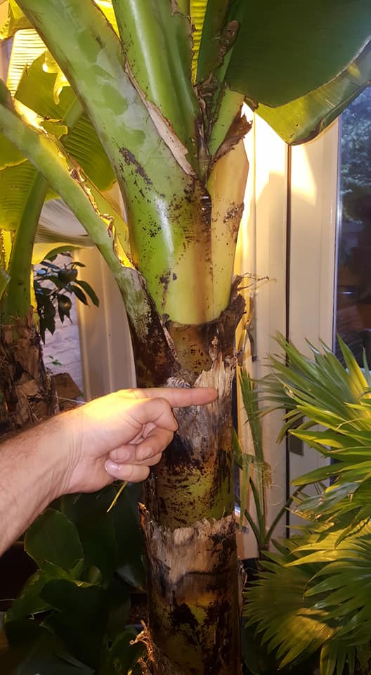 Ook zie je nu bij de Pokon Banaan dat de stam onderin begint in te scheuren, wat duid op groei :thumb_up: