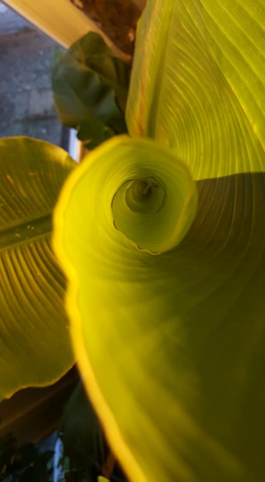 Update van deze Dwarf Cavendish van Bonne 3 weken later. 1 volledig blad erbij welke volledig uit de schijnstam is gekomen. Niet zover als in de groei lente/zomer periode maar groeit rustig en gestaag door. Nieuwe sigaar(180cm) op niveau van 3 weken geleden dus zitten gedurende deze maanden op 1 blad (50brx105h cm) per 3 weken.