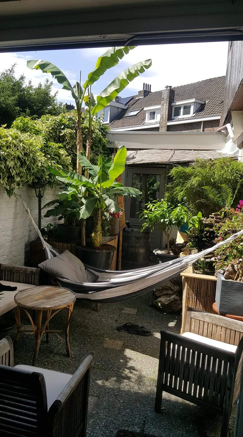 Themen, hier het broertje/zusje van Bonne's banaan, maw de twee van TV bekende moeder bananen dragende, ik had mazzel hem door de winter periode te kunnen trekken, Bonne heeft intussen andere dingen geleerd, te lezen in de vorige pagina's.