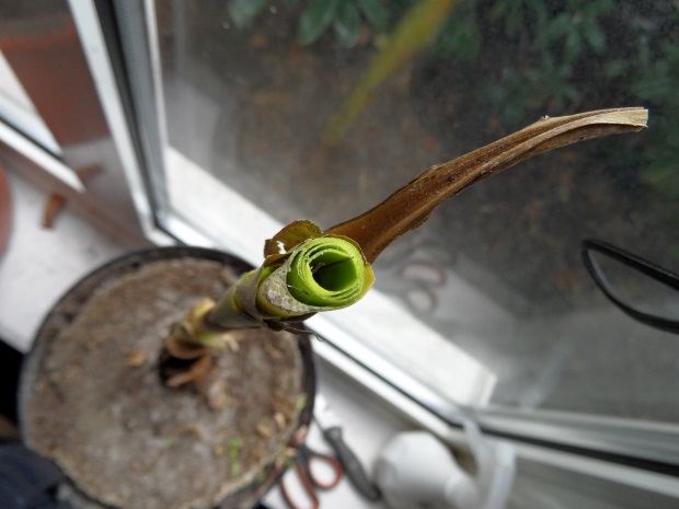 Joep,terugsnijden doe je tot op het gezonde weefsel,je moet dus een fris tot lichtgroene sigaar zien zitten net zoals op de tweede foto,mijn musa's zijn allen in volle grond uitgeplant wat gisteren gebeurt is en was toch wel een surieus karwei,wat betreft het verschil tussen basjoo en sikkimensis kan je herkennen aan de dikte van het blad,sikkimensis heeft dikker blad dan de basjoo en voelt leerachtig aan.