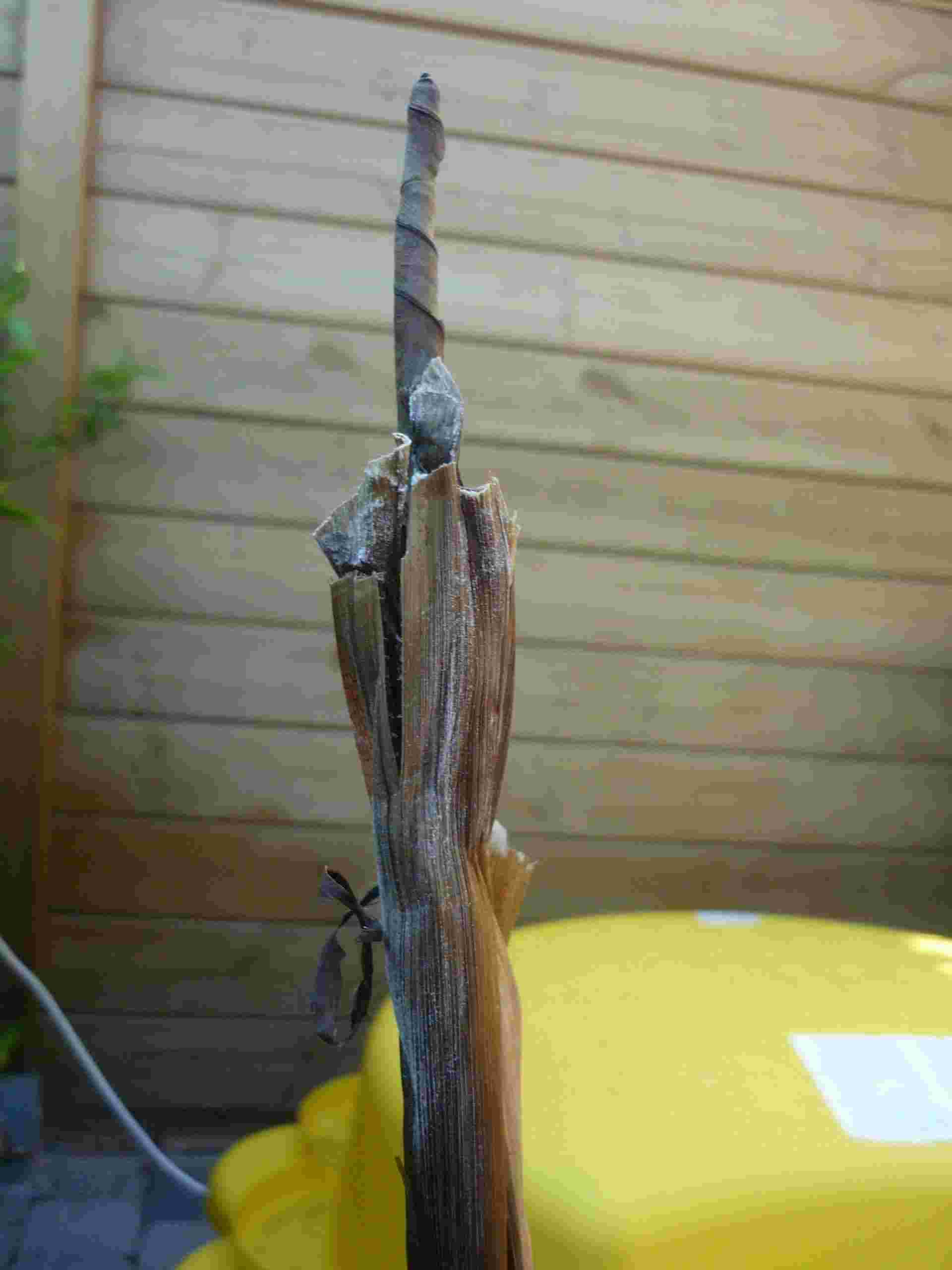 nu hebben we gemerkt dat de stam bruin word en een witte stip tevoorschijn komt ook stinkt het als je er aan gaat ruiken
