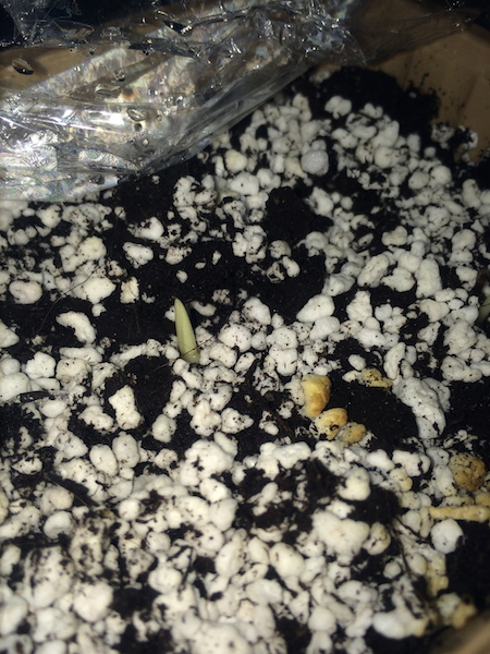 Na de zagen 48 uren geweekt te hebben zijn ze gezaaid in zaai en stekgrond vermengd met perliet.