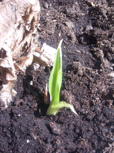 De eerste scheut is ondertussen al ongeveer 10 cm hoog en ik zal deze proberen los te halen van de moederplant als die ongeveer 20 cm is.