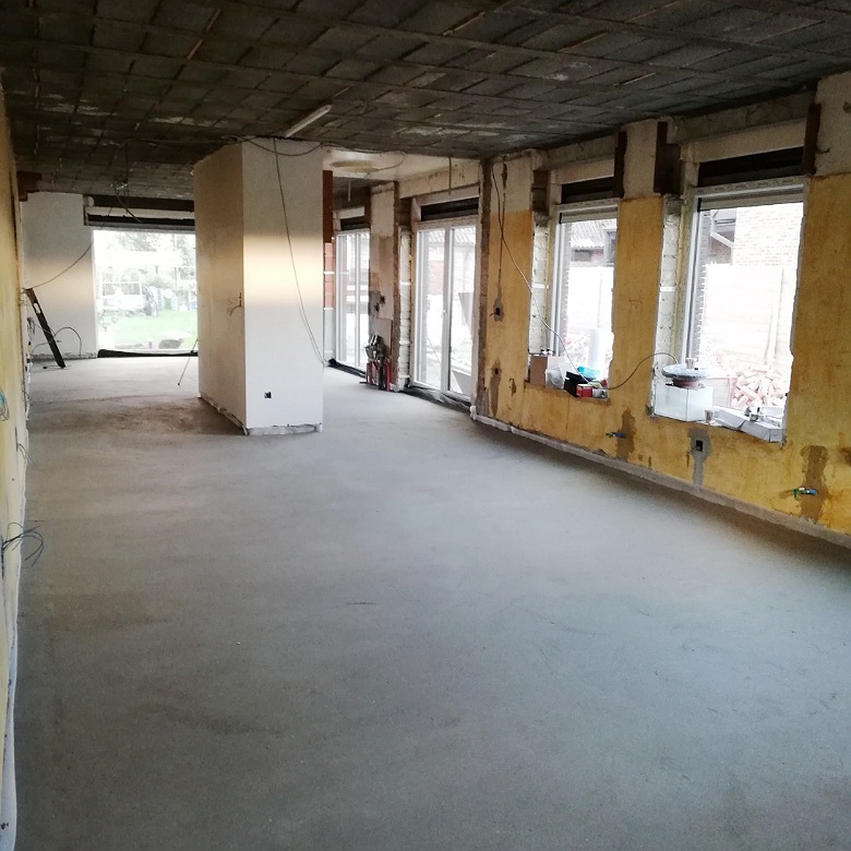Nu enkel wat binnenmuren pleisteren, de vloer op de nieuwe chape/ondergrond, nieuw plafond erin.. verder nog wat kleine afwerkingen, en dan ein-delijk gaan inrichten !