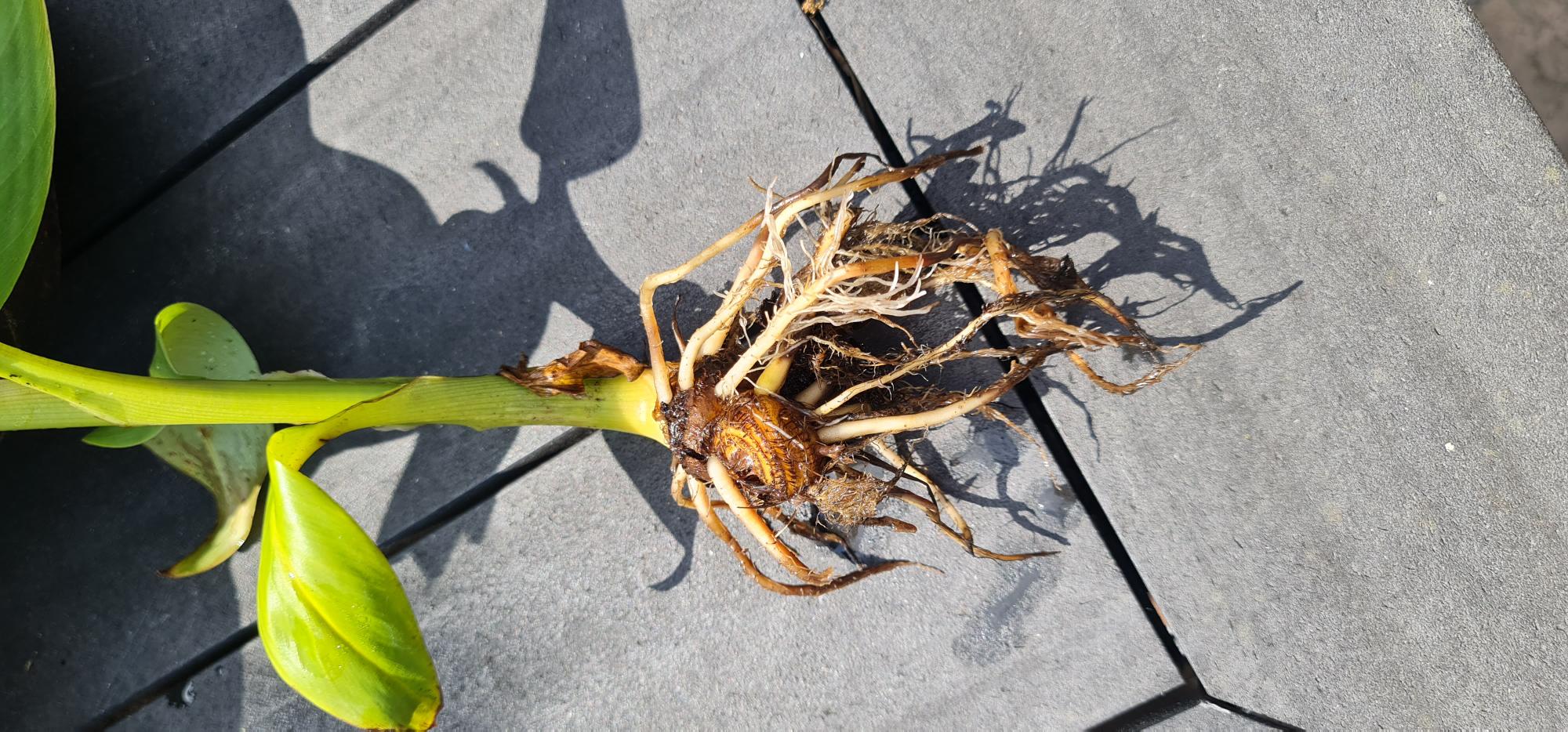 Ik heb hem uit de pot gehaald en de wortels schoon gespoeld.