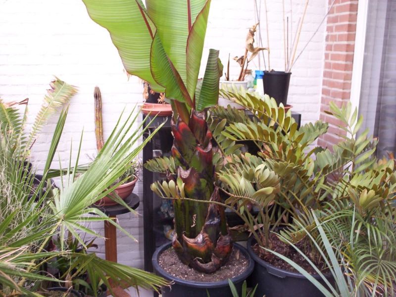 Ik moet mijn ensete ventricosum Maurelli gaan verpotten vermits de wortels door de drainage gaten komen van zijn pot. Deze zit in volle groei en maakt bijna wekelijks een nieuw blad.