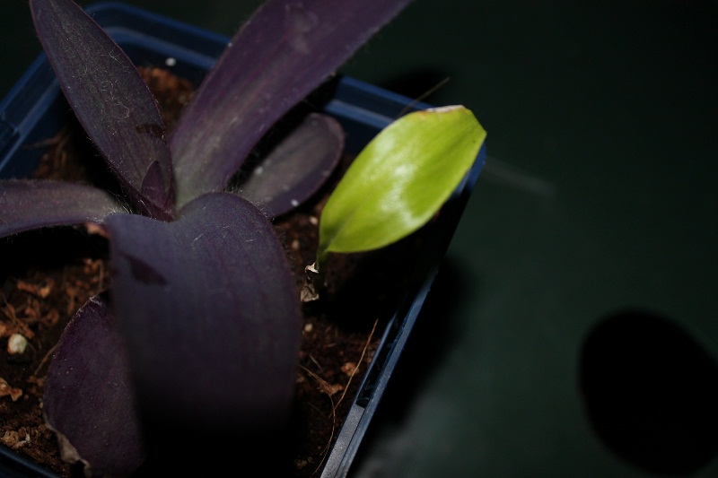 en heb de zaailing bij een stek geduwd van een tradescantia pallida purpurea.