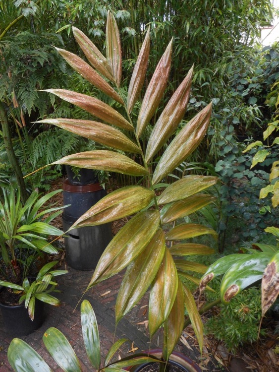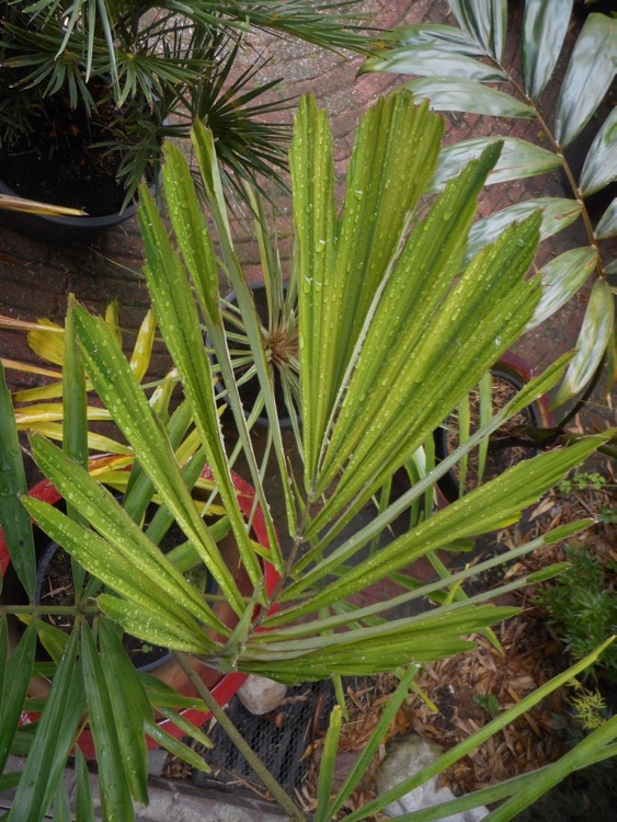 De uitstekende zomer werpt zijn vruchten af zoals het resultaat van deze Trachycarpus martianus toont. Meestal is het aantal vitale bladeren beperkt tot 3 à 4 waarbij het oudste blad snel aftakelt tijdens de ontplooiing van een nieuw blad. Dit jaar zorgde de voorspoedige groei voor een verdubbeling van het opstaande blad.