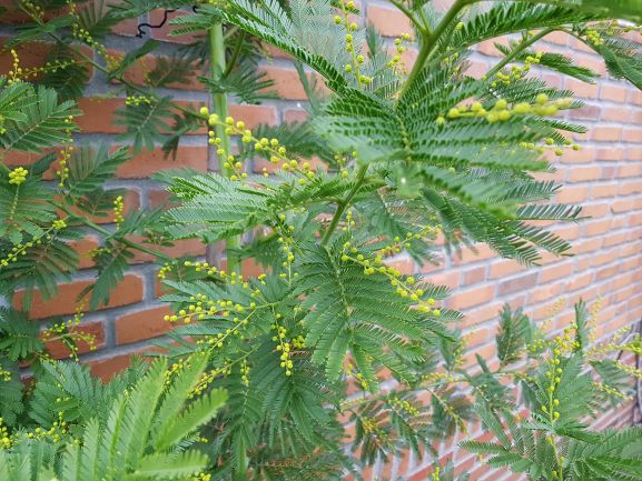De geur van mimosa in de lucht is zalig.....het hangt hier tussen de bergen....en wij plukken het zelfs voor in huis, zoiets als de enige gele bloem die hier het huis binnenkomt..en ik verwijder al maanden duizenden zaailingen uit onze tuin....toen ik nog in het noorden woonde heb ik meermaals een struikje gekocht en verloren en vaak moeite gedaan afgesneden bloemtakken te kopen met soms de teleurstelling dat ze niet open kwamen....de bomen staan hier inmiddels vol knop en zaadpeulen....over een maand of 3 is het weer zover..ik ga morgen weer jonge boompjes wieden....