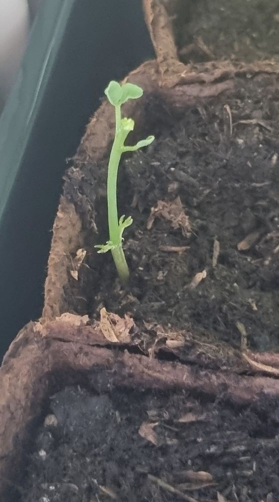 Ik zie dat ze in de kamer staan bij de verwarming met een paar fluorescentielampen er boven. Daar zijn tropische planten niet echt tevreden mee. De Moringa's die zijn opgekomen strekken ook op zoek naar licht, de warme tropenzon dus. De Moringa die ik heb houdt in de winter min of meer op met groeien en begint weer te groeien in de lente als er meer licht is.