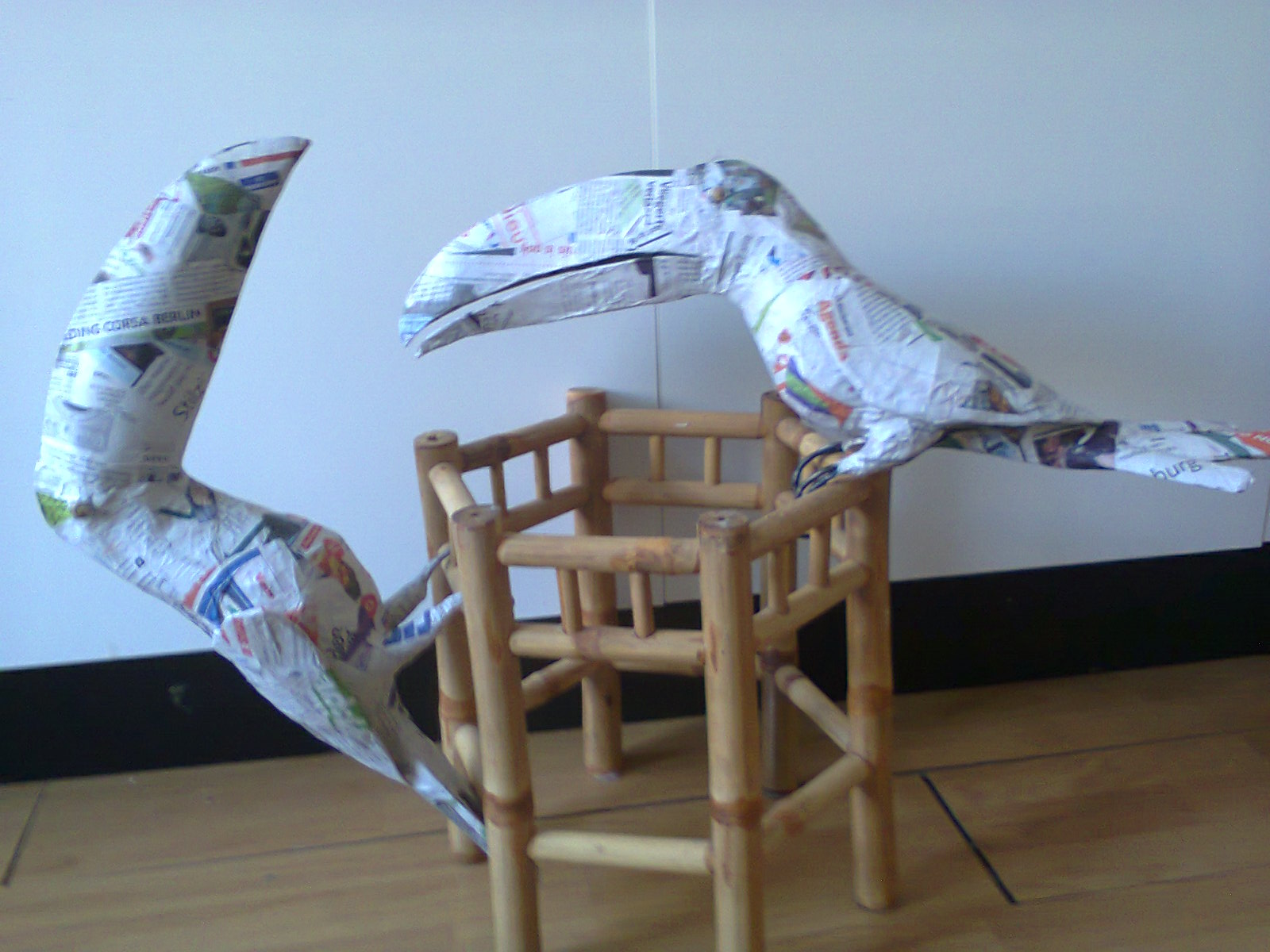 Ik heb die twee op het 'klimrek' gelijk opgezocht en ga ik morgen afmaken.. of iig een begin maken aan het afmaken. De snavelvormen van deze exemplaren zijn ook veel beter gelukt dan mijn eerste die reeds af is, zoals je op de foto ziet. De nieuwe zijn natuurgetrouwer en bij een kan de snavel ook open, ik wilde in het puntje van die grote snavel zo'n rood vruchtje plakken zoals je op veel natuurfoto.s ziet, je weet vast wel wat ik bedoel. Sowieso heel mooi hoe dat er dan uit ziet, zon enorme snavel en dan een fragiel vruchtje die hij er heel precies en voorzichtig tussen kan klemmen, .
