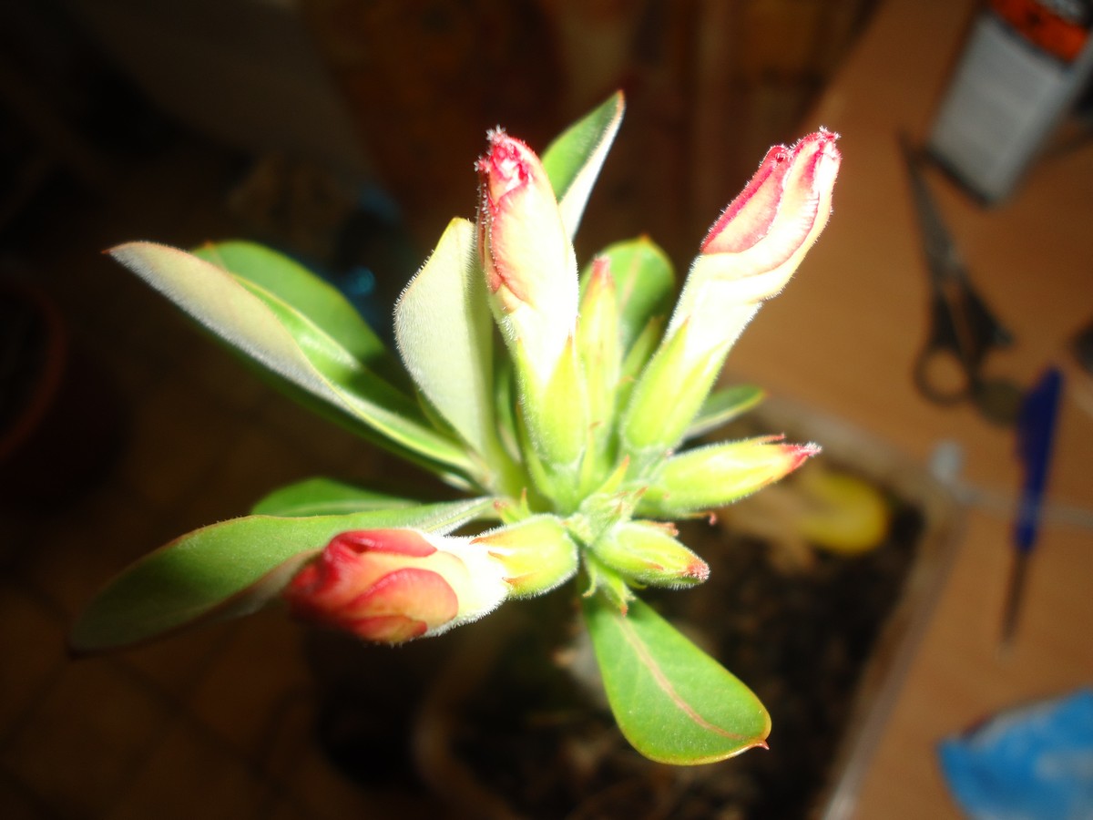 Sommige Adenium kunnen ook zichzelf bevruchten, maar meestal zijn ze zelfsteriel. Mijn hoop is dat er ooit 2 verschillende planten met verschillende kleuren bloeien. En dan kan ik een kruisbestuiving doen met een penseel. Met wat geluk heb ik dan zaad.