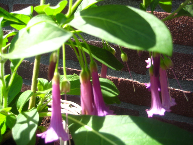 Ook deze planten heb ik kado gekregen op mijn verjaardag (ik ben echt verwend). In het draadje "van harte" had ik beloofd ze jullie te laten zien en kan ik meteen vragen of iemand mij kan vertellen wat de beste verzorging is. Ik weet dat ze verwant zijn aan Brugmansia's, zouden ze dan ook zo snel groeien en makkelijk te stekken zijn.......