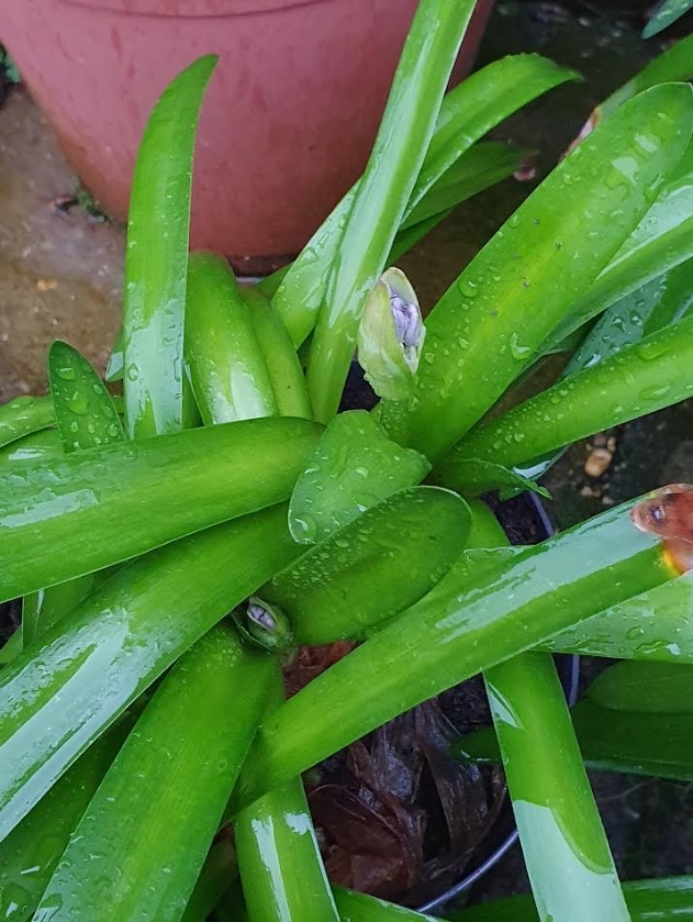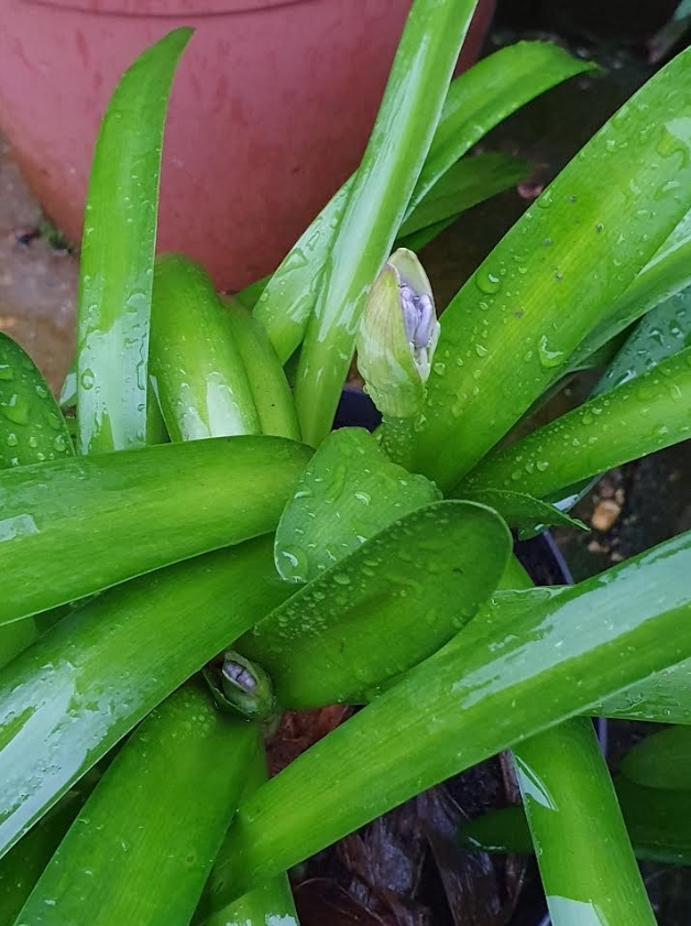 Eén van mijn Agapanthus besluit om nu al te gaan bloeien.