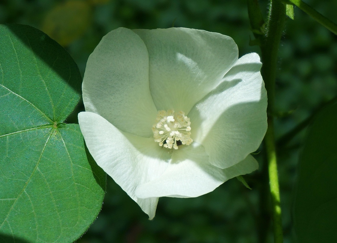 Katoen komt van de katoenplant, de Gossypium herbaceum. Wie de bloem bekijkt ziet duidelijk dat het een lid is van de Hibiscus familie, de Malvaceae.