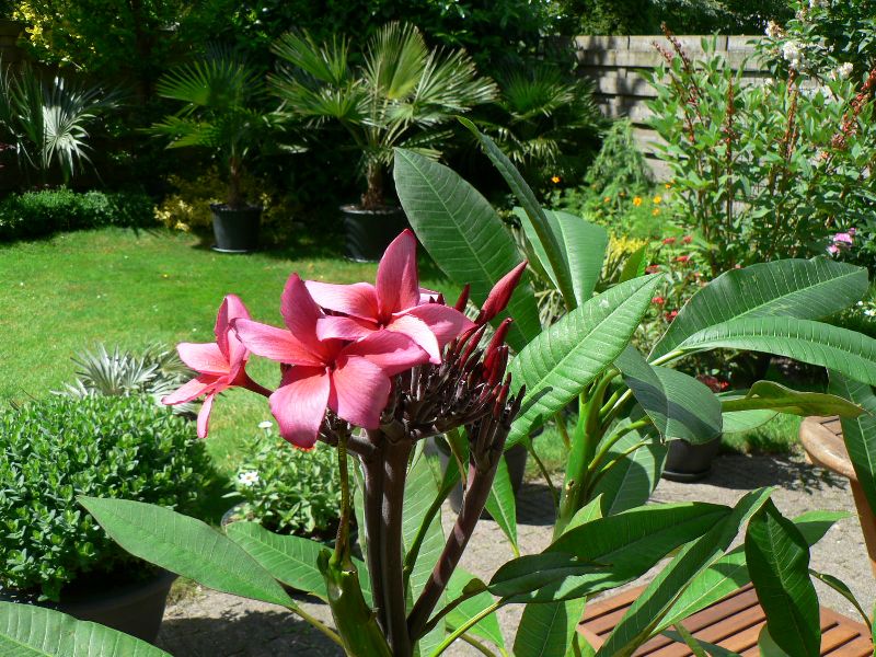 Ik wou even met jullie delen dat van de week de eerste bloemen van mijn rode plumeria zijn uitgekomen .