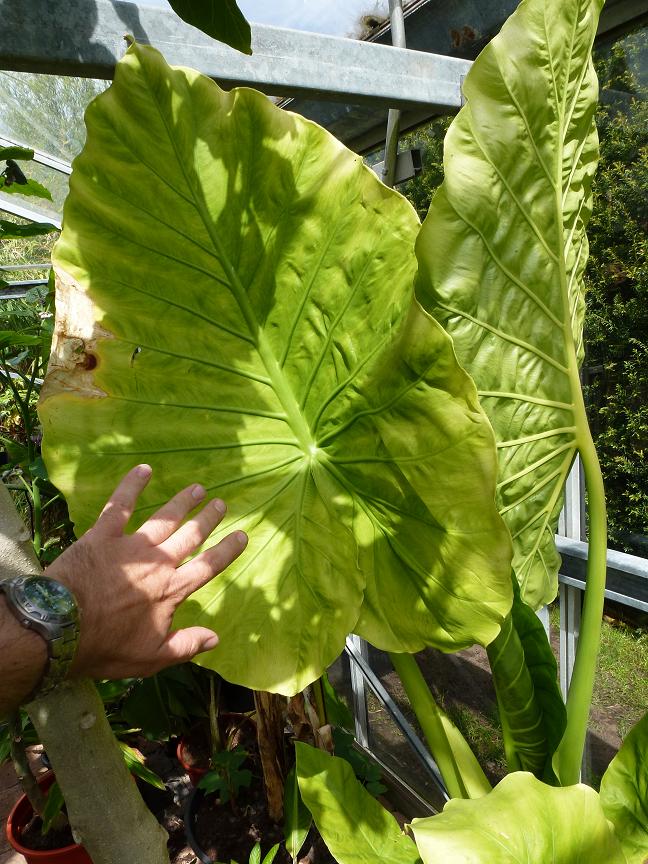Heb net mijn Alocasia (zelf gezaaid van plant uit botanische tuin Tenerife) eens opgemeten en het grootste blad meet 70cm. Staat momenteel nog weggeduwd achterin de serre maar wacht maar tot die binnenkort in de volle grond gaat :lol:
