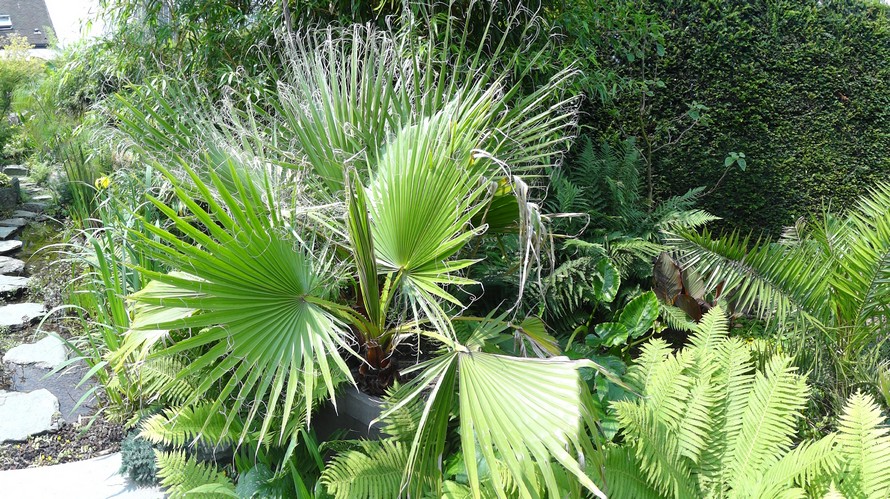 ik heb thuis een vergelijkbare situatie: m'n Washingtonia staat tijdens de winter in een garage/kelderkamer met twee ramen (+/- 35 x 35 cm). Na de winter worden er telkens 3 tot 5 bladeren met bruine vlekken afgesneden. Met wat mest komen er in het voorjaar weer snel nieuwe speren te voorschijn. De Washi op de foto is enkele jaren geleden gekocht als klein plantje en wordt ieder jaar aanzienlijk groter. Ik vrees ervoor dat ik hem niet meer binnen ga krijgen na enkele jaren. Geen probleem dus dat er enkele bladeren stuk gaan tijdens de winter.