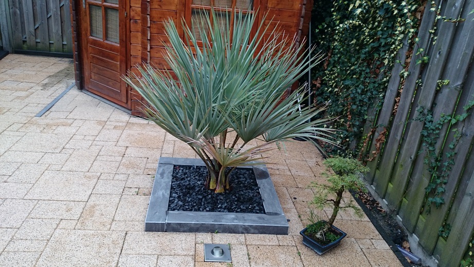 Ik weet niet welke grond jij hebt, maar de verharding rondom rond je palm laat zeker al geen water door.