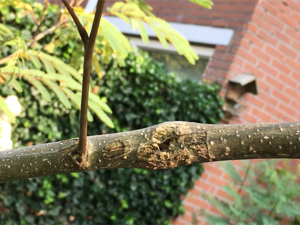 Na het verplaatsen vorig jaar kwam mijn Albizia traag op gang dit jaar, maar tot mijn vreugde zag ik wel bloemknopjes een paar dagen geleden.