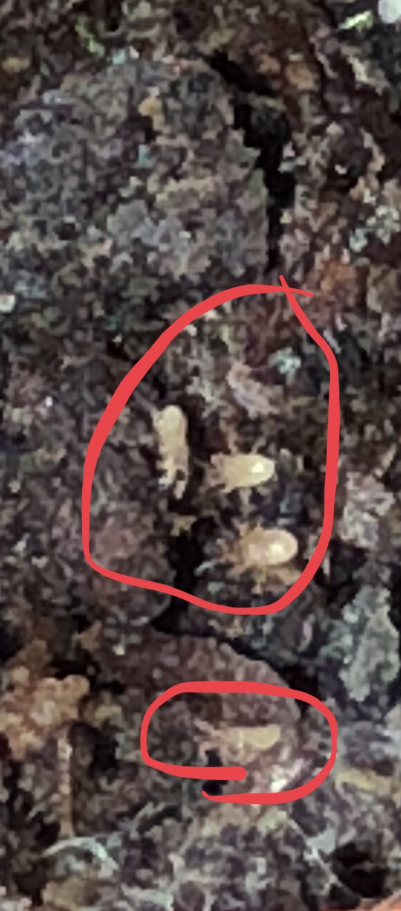 Ze zijn rond, hebben voelsprieten, 6 poten en een dik achterlijf. Nauwelijks een milimeter. Geen vliegjes gezien. Ze zitten alleen op de aarde en niet op het blad of stam. Een steel van de Yucca is kapot gegaan.
