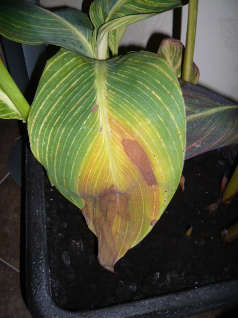 Nu krijgen verschillende bladeren ineens een grote bruine vlek vanaf de punt van een blad.