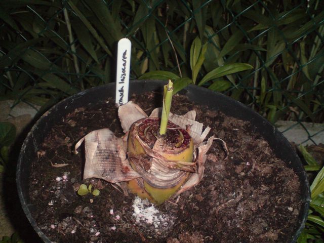 Ervaringen met een lasiocarpa heb ik niet, maar wel met een basjoo die er gelijkaardig uitzag: tijdens de winter had hij 2 bladeren aangemaakt in de garage, en dan helemaal stilgevallen... deed echt niks! Ik heb de kop er dan afgesneden, en nog steeds niks... zelfde beeld als bij musella nu, ingedroogd. Toen dacht ik dat ik niet veel meer te verliezen had en heb ik ineens 20 cm afgesneden, tot waar de stam iets dikker was en hup, na een dag zat er in de midden een 'torentje' 4 cm hoger! Dat blad is er nu volledig aan het uitkomen, hij is helemaal vertrokken!